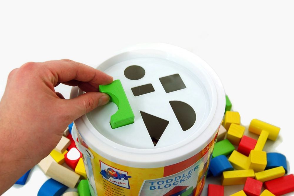 Wieko wiaderka, do którego spakowano zestaw, posiada otwory w różnych kształtach. Dzięki temu zabawka może pełnić rolę sortera. Sortowanie klocków pomoże w rozwijaniu umiejętności rozróżniania kształtów, a przy okazji zachęci dziecko do sprzątania po zabawie.