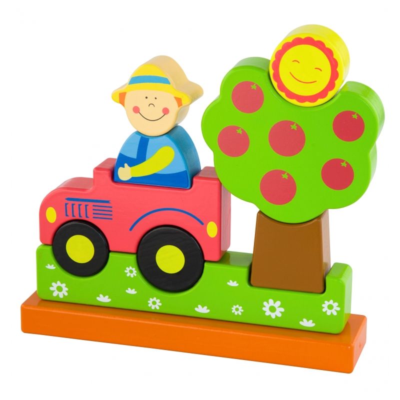 Klocki magnetyczne Farma sprawią dziecku mnóstwo radości! Zestaw zawiera 10 starannie wykonanych elementów, wewnątrz których znajdują się magnesy. Po ułożeniu klocki tworzą bajecznie kolorową figurkę przedstawiającą farmera w samochodzie. Zabawka jest wykonana z wysokiej jakości drewna.