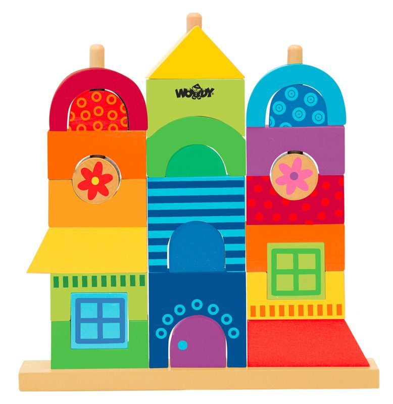 Klocki na palikach Mój Dom – zabawka drewniana Woody dla dzieci od 2 r.ż.