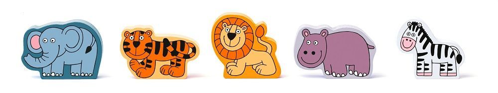 -zwierzęta, które można wkładać do wagonów lub postawić obok torów: słoń, tygrys, lew, hipopotam i zebra,