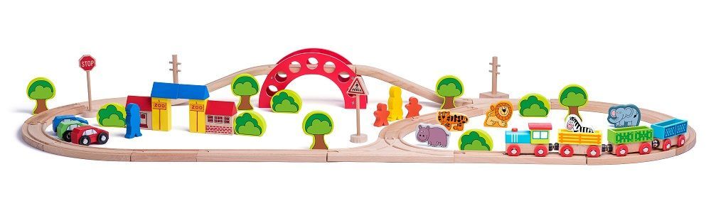 Zestaw jest bardzo rozbudowany, taka ilość elementów daje nieograniczone możliwości zabawy! Rozbudowywanie torów to wciągająca rozrywka, która wspomaga rozwój wyobraźni oraz kształtuje umiejętność planowania i postrzegania przestrzennego. Dodatkowo wspólna zabawa to świetna lekcja współdziałania oraz trening umiejętności komunikacyjnych. Elementy zestawu są drewniane, co gwarantuje wysoką trwałość.