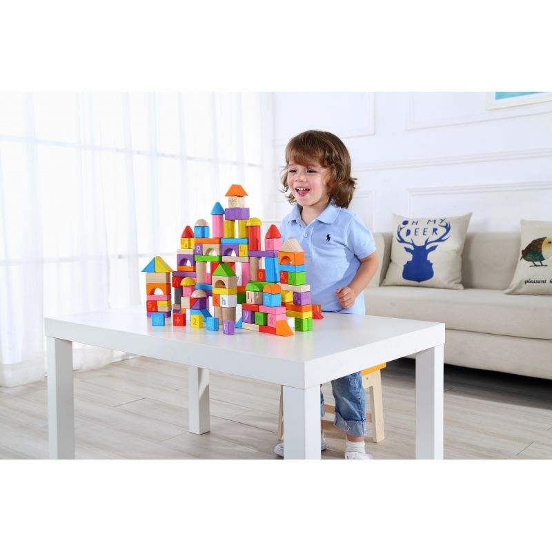 TOOKY TOY Kolorowe Klocki Drewniane to aż 135 elementów. Prawdziwa frajda dla każdego malucha. Dziecko bawiąc się będzie mogło nabierać różnych umiejętności przydatnych w codziennym życiu. Klocki wykonane są z drewna i pomalowane żywymi kolorami dzięki czemu przyciągną uwagę każdego malucha. Brak ostrych krawędzi sprawia, że produkt jest w 100% bezpieczny dla naszej pociechy. Klocki wykonane z myślą o małej rączce dziecka. To świetny pomysł na prezent bawiąc się dziecko uczy się kolorów oraz rozróżniania kształtów.