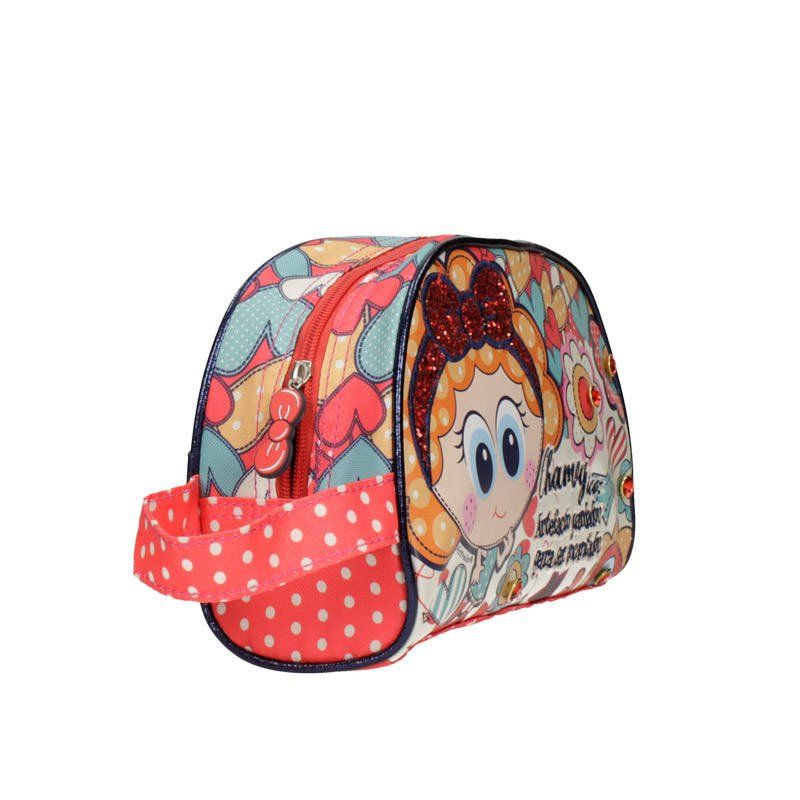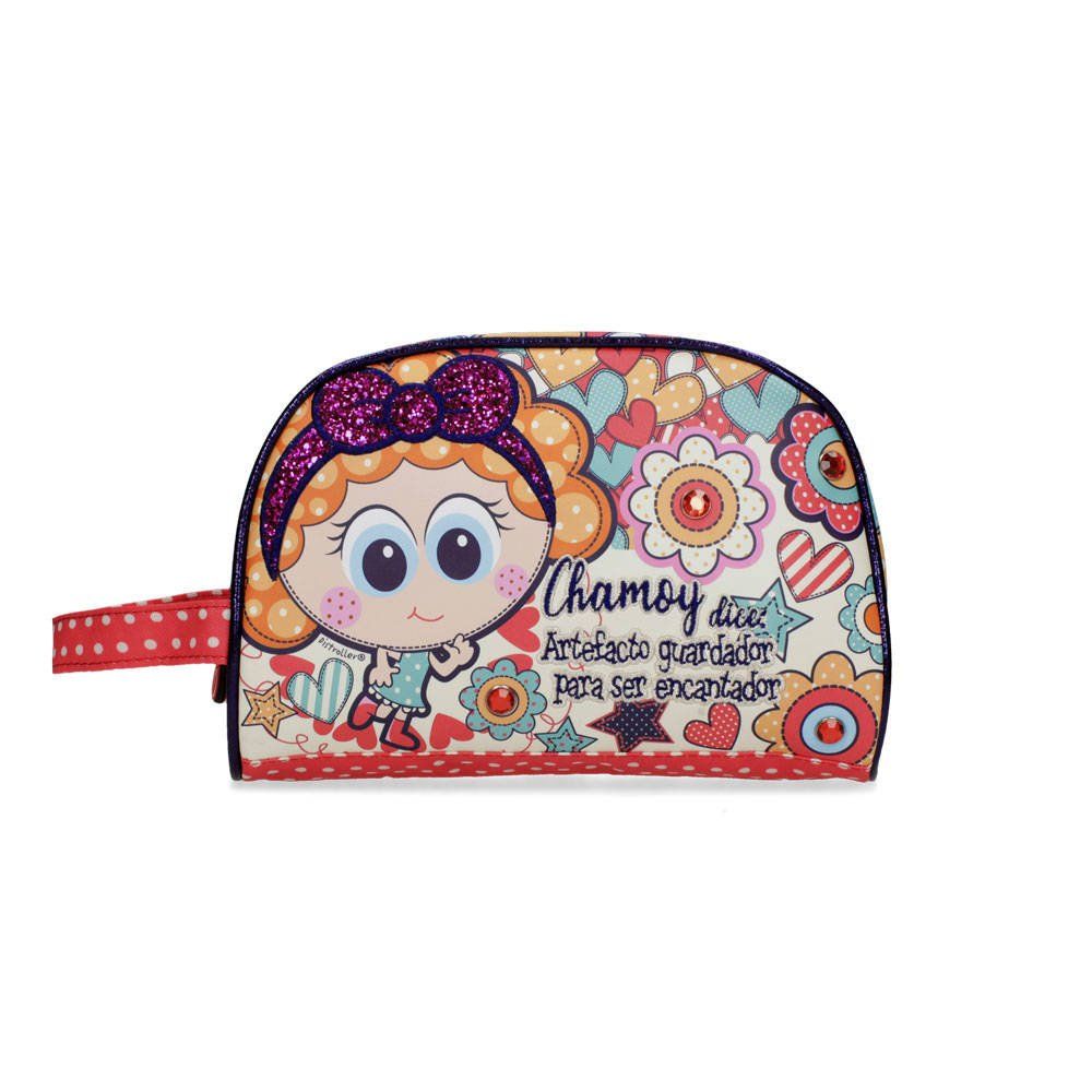 Kosmetyczka wyróżnia się pięknym designem oraz wysoką jakością wykonania. Produkt zrobiono z nylonu, materiału tekstylnego i ekoskóry. Kosmetyczkę z przodu zdobi postać dziewczynki o imieniu Chamoy, a z tyłu ozdobą są kolorowe serduszka. Marka Distroller powstała w Meksyku z pomysłu artystki Amparo „Amparin” Serrano – misją marki jest niesienie radości innym poprzez innowacyjny i przełomowy styl.