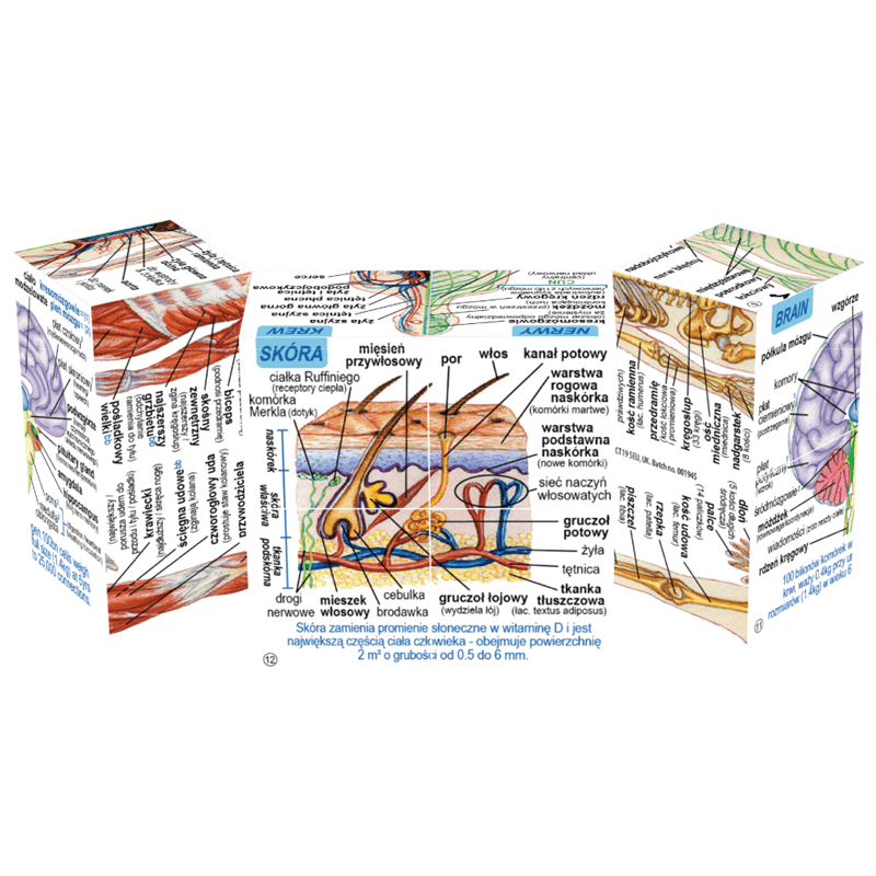Kostka drewniana ludzkie ciało pomoże dziecku w poznać budowę wielu różnych narządów. Wszystkie informacje są w języku polskim, więc maluch nie będzie miał problemu z przyswojeniem informacji. Całość wykonano z wytrzymałego drewna, dzięki czemu kostka może być cennym źródłem informacji przez naprawdę długi czas.