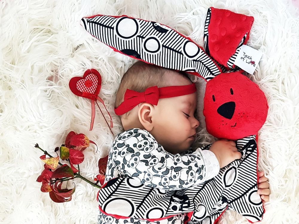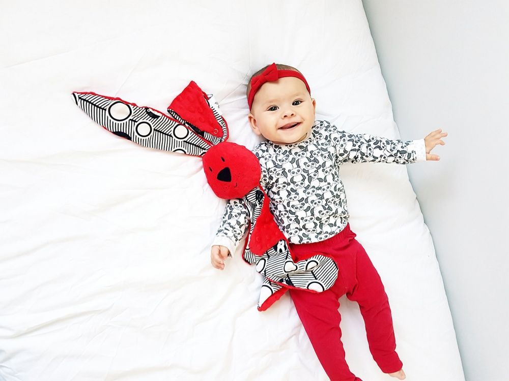 Jedno uszko królika wypełnione jest szeleszczącą folią – to z pewnością zaciekawi malucha oraz zachęci go do doskonalenia umiejętności chwytania. Na drugim uszku znajduje się zatrzask, dzięki któremu można łatwo przymocować króliczka do łóżeczka lub wózka. Barwy produktu zostały dobrane tak, aby były dobrze widoczne dla maluszka. Przed użyciem, króliczka należy wyprać w ciepłej wodzie z dodatkiem mydła dla niemowląt. Produkt wyprodukowany w Polsce! Króliczek doskonale sprawdzi się w roli prezentu na pierwszą wizytę.