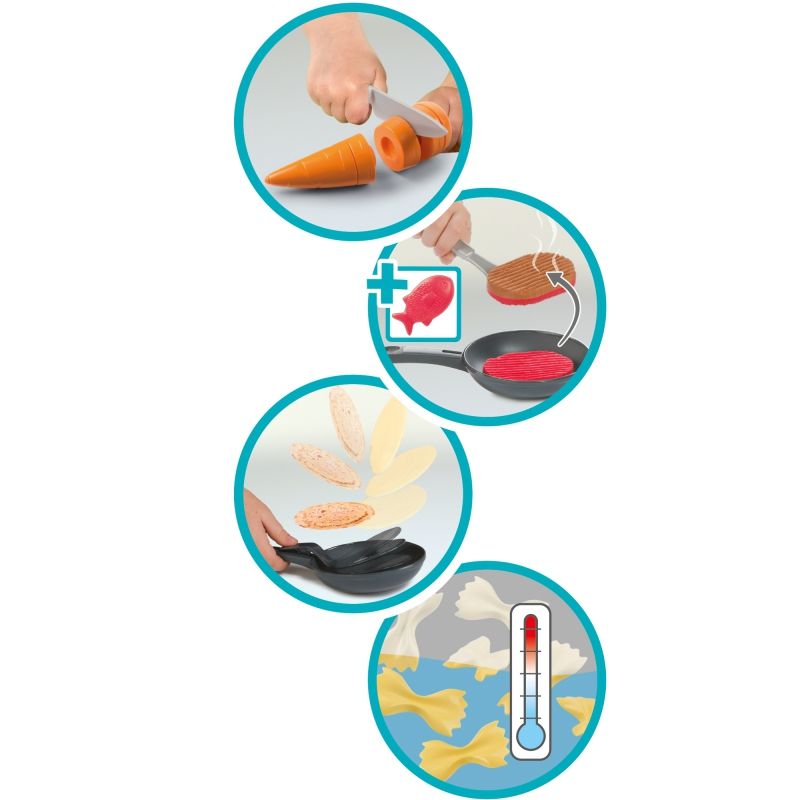 Zabawki francuskiej firmy Smoby cechuje bardzo wysoka jakość wykonania. Są wykonane z najwyższą starannością z trwałych materiałów i pomalowane bezpieczną dla dzieci farbą. Kuchnia została wyposażona w magiczny garnek z bąbelkami, patelnie wyposażoną w funkcję przerzucania naleśników, duży, funkcjonalny blat, elektroniczną płytę grzewczą z efektami dźwiękowymi oraz takie jak akcesoria lodówkę, piekarnik, czy ekspres do kawy. Wyjątkowa forma zabawki zapewni doskonałą rozrywkę maluchom!