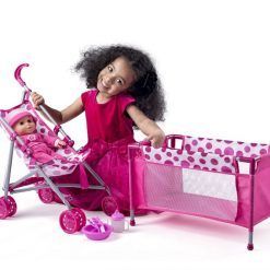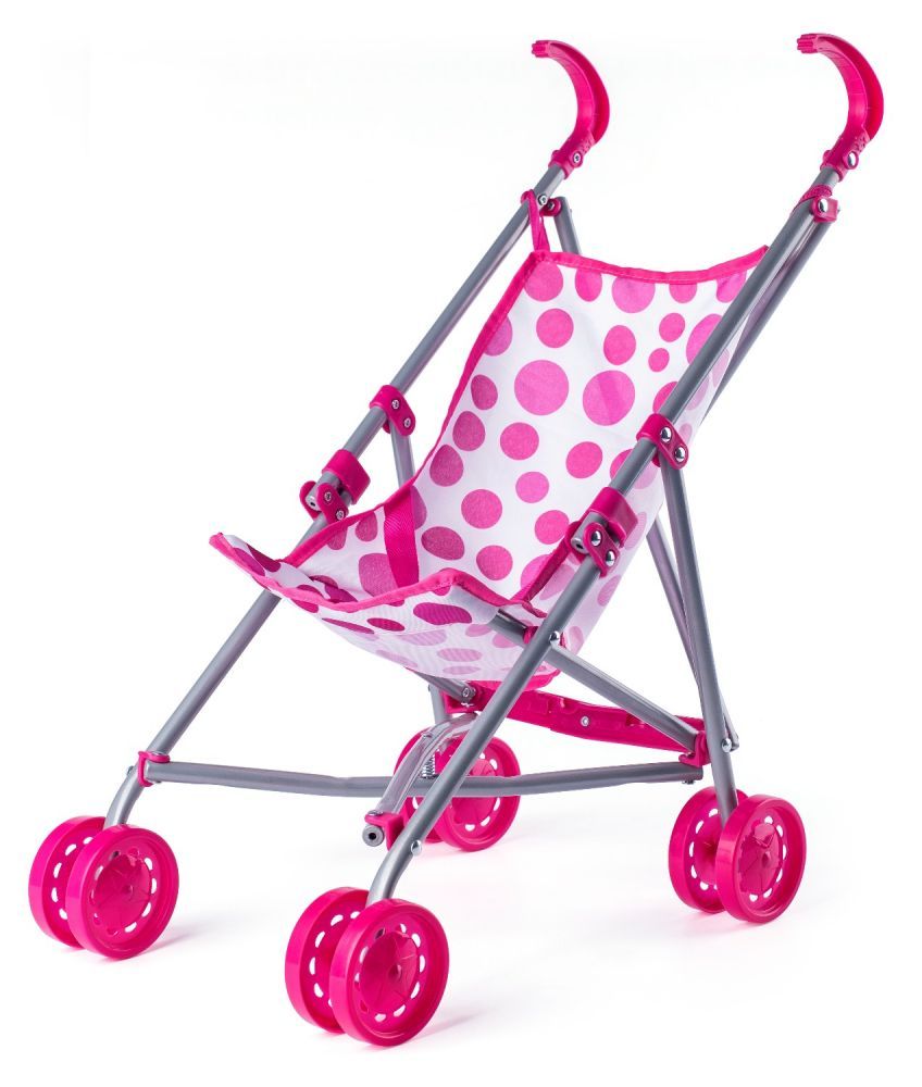 Wózek ma kolor różowy, można go łatwo składać i rozkładać. Jest bardzo lekki. Z przodu wózka umieszczono pas, który będzie chronił lalkę przed upadkiem.