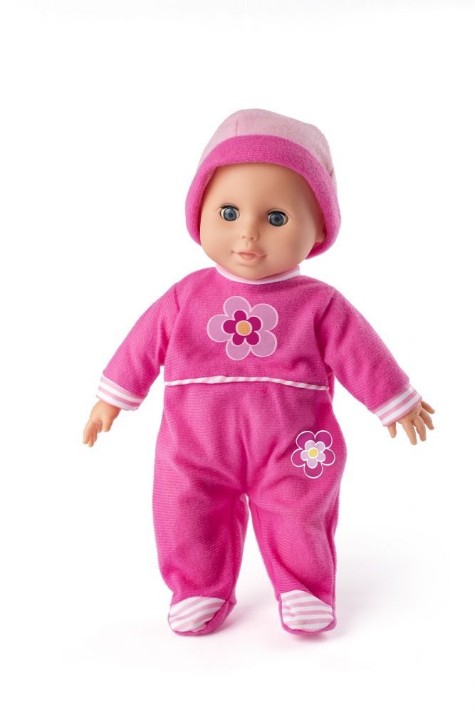 Lalka ubrana jest w śpioszki i czapeczkę. Jej oczka się zamykają i otwierają podczas ruchów w przód i w tył. Po naciśnięciu, lalka będzie mówić, zna słowa takie jak: mama, papa, hello, bye-bye, ponadto śmieje się i płacze.