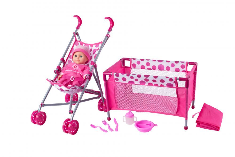 Lalka Bobas z wózkiem i łóżeczkiem – zabawka 4w1 Woody
