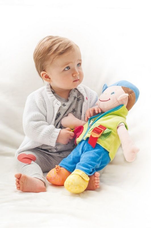 Dzięki tym wszystkim detalom dziecko może w formie zabawy ćwiczyć zdolności manualne oraz umiejętność obsługi zamka błyskawicznego, guzików itp. Lalkę wykonano z różnych materiałów, dzięki czemu dziecko za jej pomocą może rozwijać również zmysł dotyku.