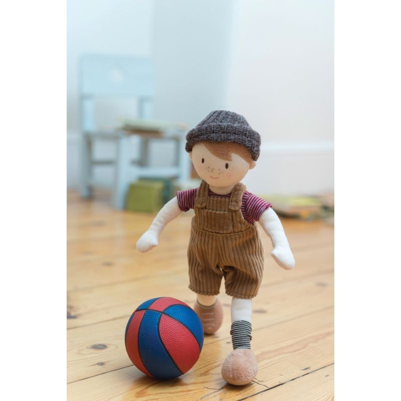 Laleczka jest wykonana z bawełny i weluru, które zapewniają bezpieczeństwo zabawy dzieciom, od pierwszych dni życia. Ubrany został w stylowe ogrodniczki, bluzeczkę oraz czapeczkę, które można zdejmować. Posiada haftowaną buzię oraz przyjemne w dotyku włoski, wykonane z weluru.