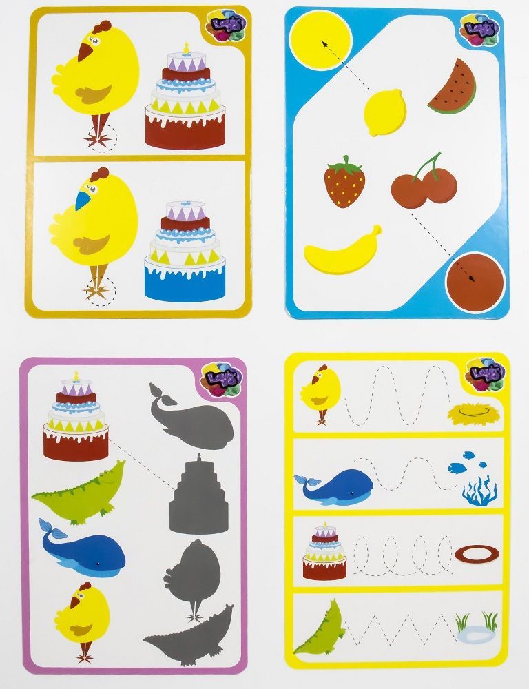 -karta z kurką – druga strona to łączenie obrazków na podstawie kolorów,