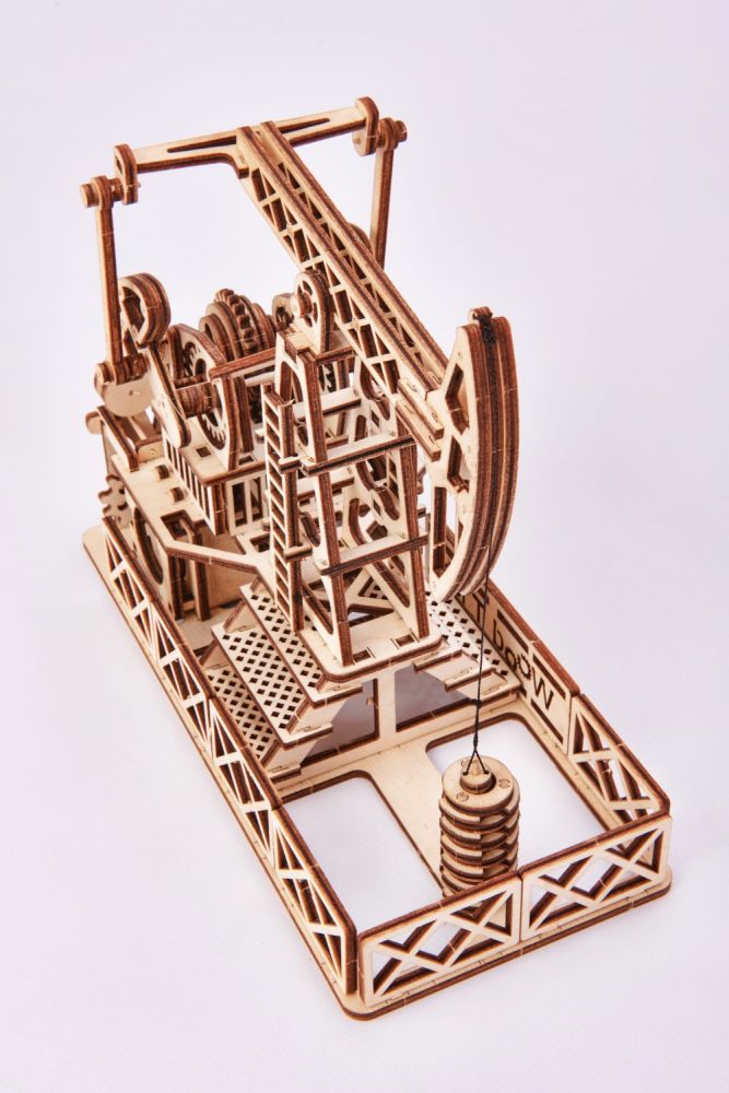 Istotną zaletą tego modelu jest to, że po złożeniu można się nim bawić – wystarczy nakręcić mechanizm kluczem umiejscowionym z boku, puścić dźwignię i obserwować jak pracuje maszyna. Dziecko będzie mogło zobaczyć jak działa cała konstrukcja!