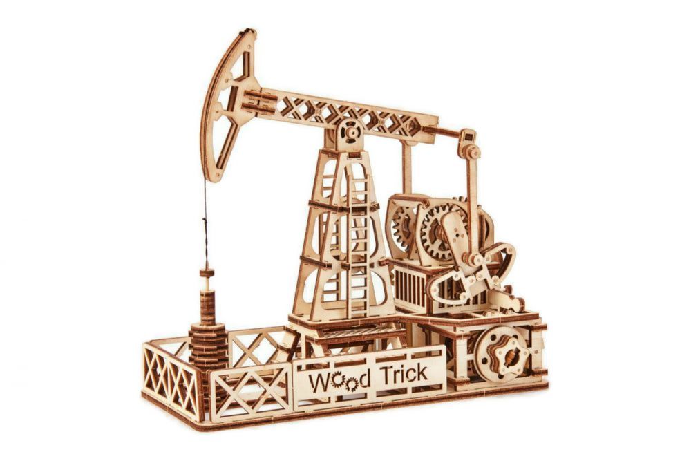 Mechaniczne puzzle 3D – szyb naftowy Wood Trick to niezwykły zestaw puzzli mechanicznych, który zapewni długie godziny wciągającej i rozwijającej zabawy. Produkt ten spodoba się fanom modelarstwa i konstruowania w każdym wieku. W zestawie znajduje się drewniany panel ze sklejki z naciętymi elementami do wypychania oraz obrazkowa instrukcja przedstawiająca jak złożyć model krok po kroku. Elementy są ponumerowane, aby ułatwić składanie.