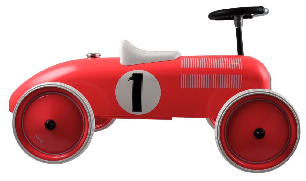 Metalowy czerwony jeździk – ekologiczny Magni jest piękną i solidnie wykonaną zabawką, która z pewnością spodoba się wszystkim małym kierowcom – taki pojazd doskonale rozwija koordynację ruchową, a także zaspokaja potrzebę ruchu, która w pierwszych latach życia dziecka jest ogromna. Jeździk został skonstruowany tak, aby dziecko mogło a nim wygodnie siedzieć i dojechać do celu odpychając się nóżkami. Zamontowana kierownica pozwala swobodnie zmieniać kierunek jazdy. Na kołach znajdują się gumowe opony, które zapobiegają porysowaniu podłogi, a także sprawiają, że jeździk świetnie sprawdzi się także na zewnątrz. Siedzisko ma długość 16 cm. Konstrukcję jeździka wykonano z metalu, jest ona bardzo solidna.