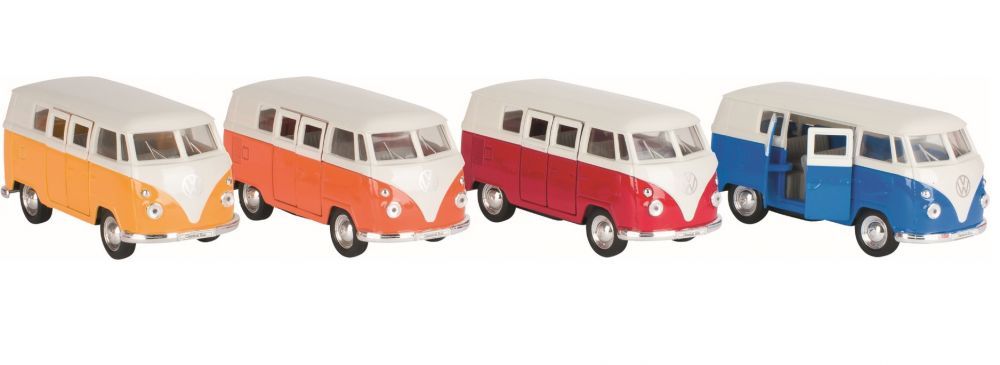Metalowy model Volkswagen T1 BUS z całą pewnością przypadnie go gustu każdemu małemu zwolennikowi motoryzacji, zwłaszcza klasycznych modeli. Samochody to bardzo często obiekt zainteresowań małych chłopców. Od teraz każdy z nich będzie mógł mieć swój własny pojazd, który został wykonany na wzór prawdziwego auta. Modele Goki wykonano z dbałością o szczegóły – posiada otwierane drzwi boczne oraz wycieraczki. Samochodzik jest metalowy. Na oponach umieszczono gumowe elementy, które zwiększają przyczepność kół do powierzchni. Autko będzie nie tylko świetną zabawką, ale także piękną dekoracją przywodzącą na myśl dawne czasy oraz historię motoryzacji.