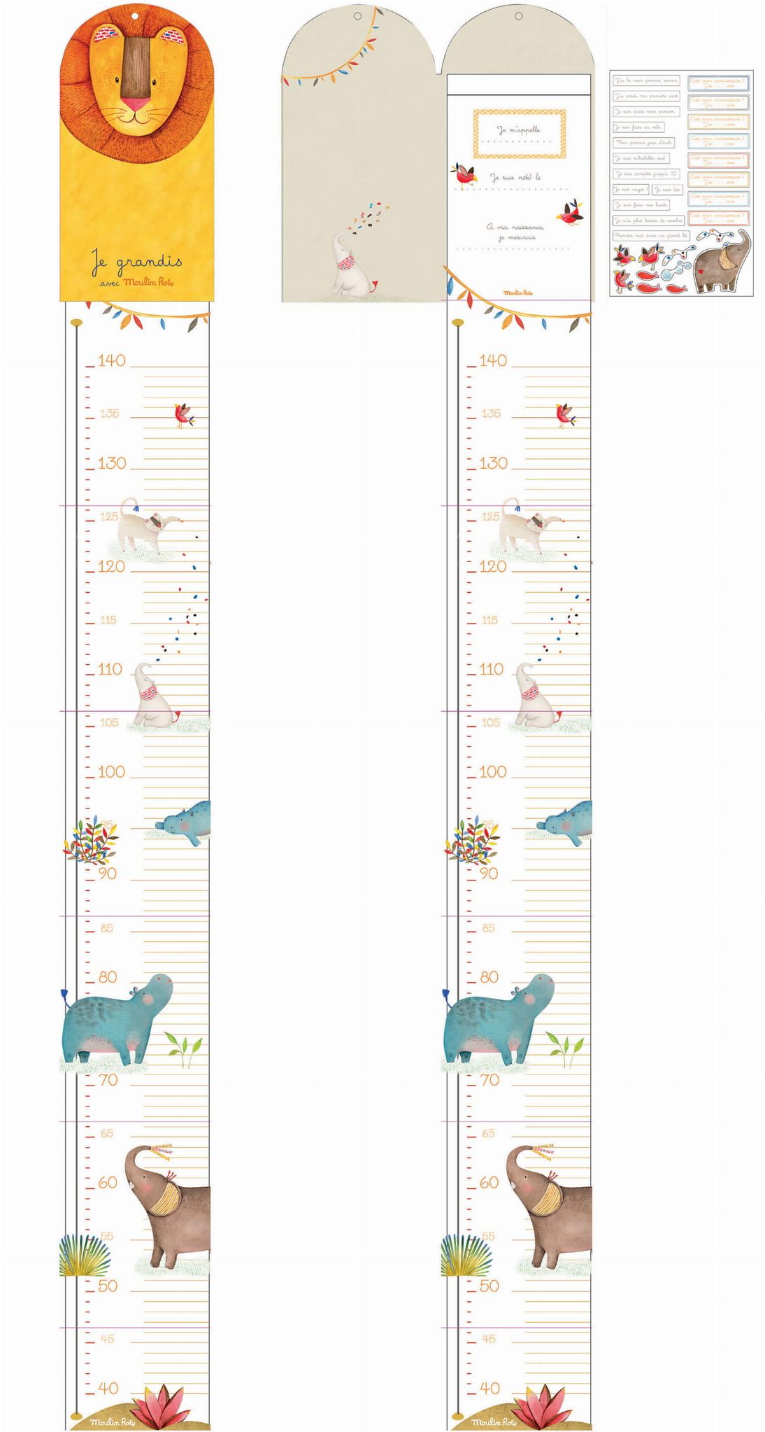 Miarka wzrostu z kolekcji Les Papoum od Moulin Roty czuwa nad rozwojem twojego maleństwa! Miarka jest w formie notatnika – otwiera się i rozkłada, aby mierzyć wzrost od 40 do 140 cm. Za pomocą wielu naklejek można zaznaczyć i zapamiętać ważne chwile Twojego malucha: „Umiem napisać swoje imię”, „Umiem jeździć na rowerze”, „Umiem pływać” itp. Przydatna dekoracja dziecięcego pokoju.