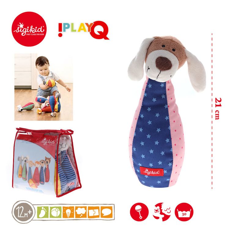Zabawkę jest częścią kolekcji PlayQ – serii miękkich zabawek, które pobudzają zmysły dziecka. Wszystkie pluszowe zabawki marki SIGIKID są dostosowane do aktualnego poziomu rozwoju malucha, dzięki czemu podczas zabawy rozwija on wiele różnych umiejętności.