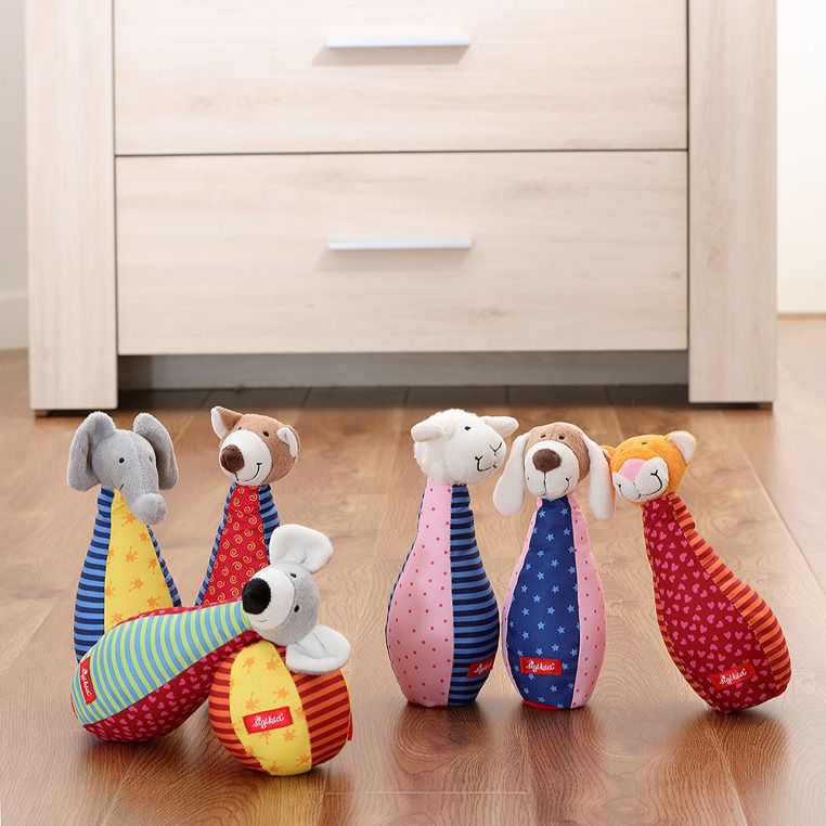Miękkie kolorowe kręgle ze zwierzątkami, które wprowadzą nauczą Twoje dziecko jego pierwszej dyscypliny sportowej! Gra w kręgle doskonale ćwiczy precyzję ruchów. Zarówno kula, jak i kręgle wykonane są z przyjaznego, pluszowego materiału, dzięki czemu zabawa jest całkowicie bezpieczna.
