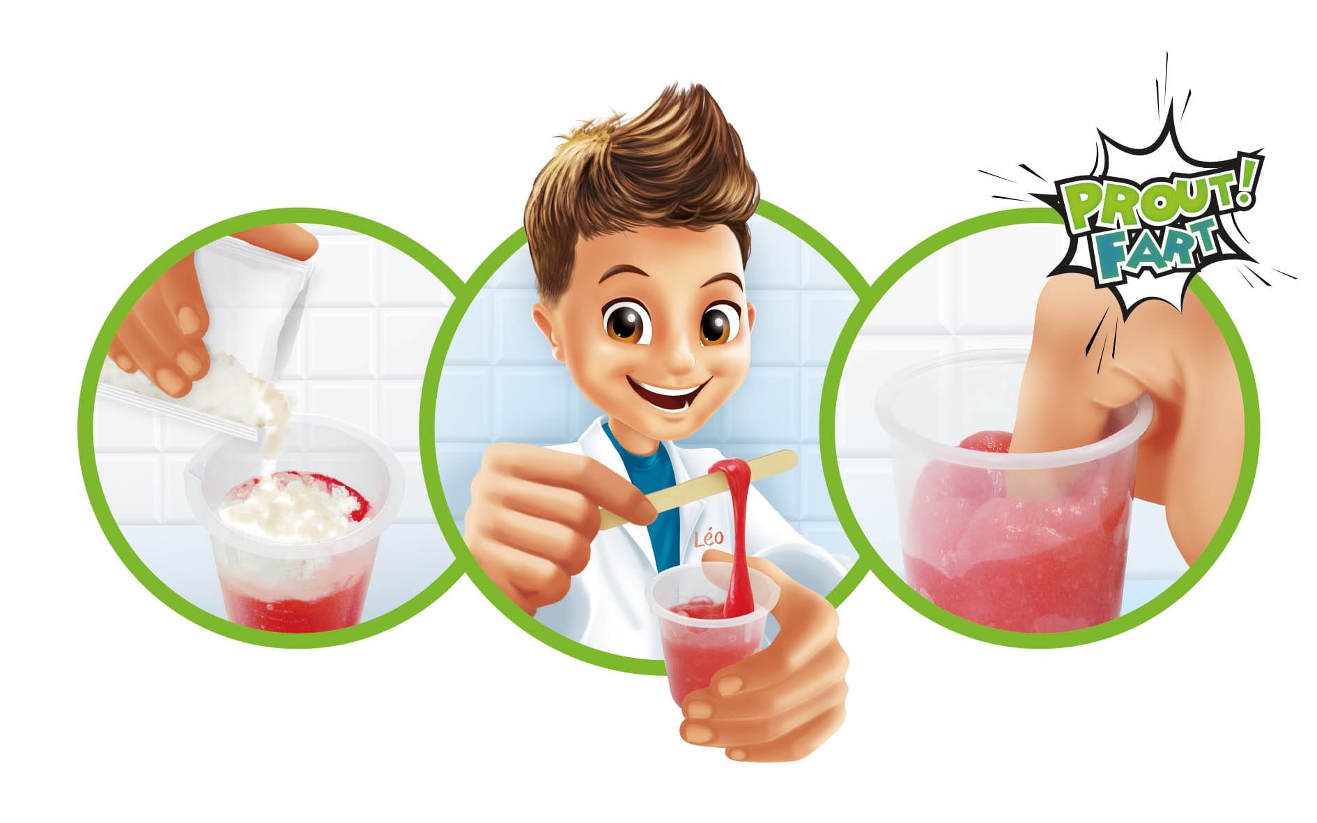 Zestaw do stworzenia śmiesznych, lepkich glutów. Zmieszaj proszek oraz wodę, aby otrzymać ciekawe mieszanki: gluty, gluty z brokatem, skaczącą piłkę czy masę puszczającą bąki! Świetna zabawa gwarantowana. W pudełku znajdują się akcesoria do wykonania 6 mikstur.