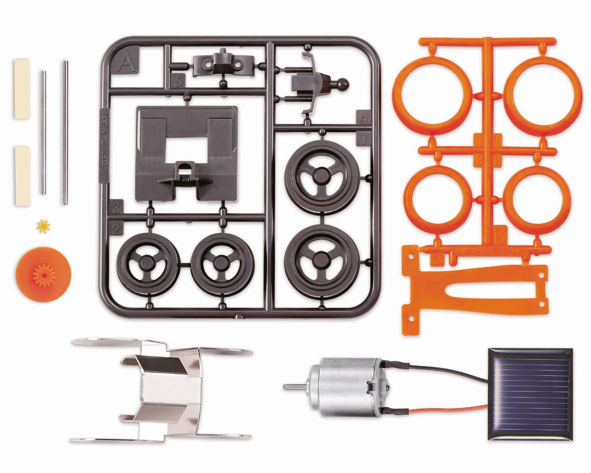 Zestaw do stworzenia swojego własnego samochodziku napędzanego energią słoneczną. Przy pomocy kombinerek lub pęsety należy wyjąć z ramki wszystkie elementy i połączyć je według instrukcji, aby złożyć samochód. Następnie wystarczy wyjść na dwór, aby na ekran padały promienie słoneczne i patrzeć, jak samochodzik zaczyna się poruszać.