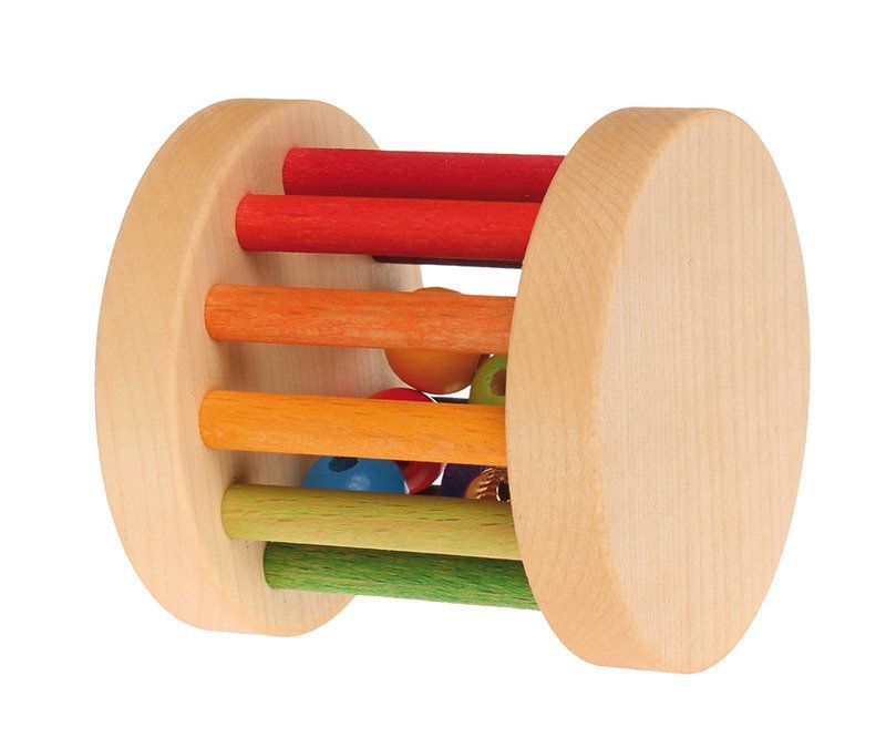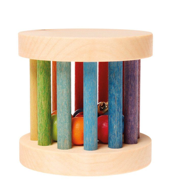 Kolorowa rolka wypełniona drewnianymi kuleczkami to doskonała zabawka dla najmłodszych maluszków. Twoja pociecha może bawić się nią jak grzechotką. W środku znajduje się dzwoneczek wydający delikatne dźwięki. Zabawkę można też turlać, wprawiać w ruch lub wykorzystać do nauki kolorów.