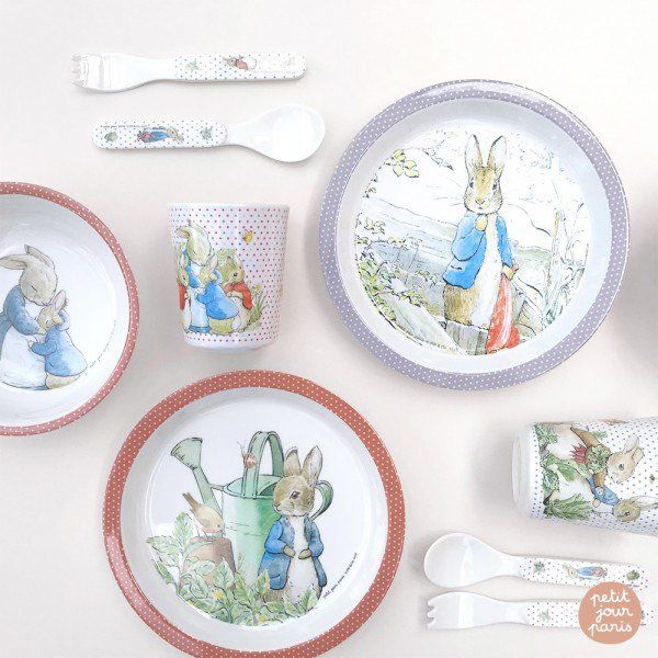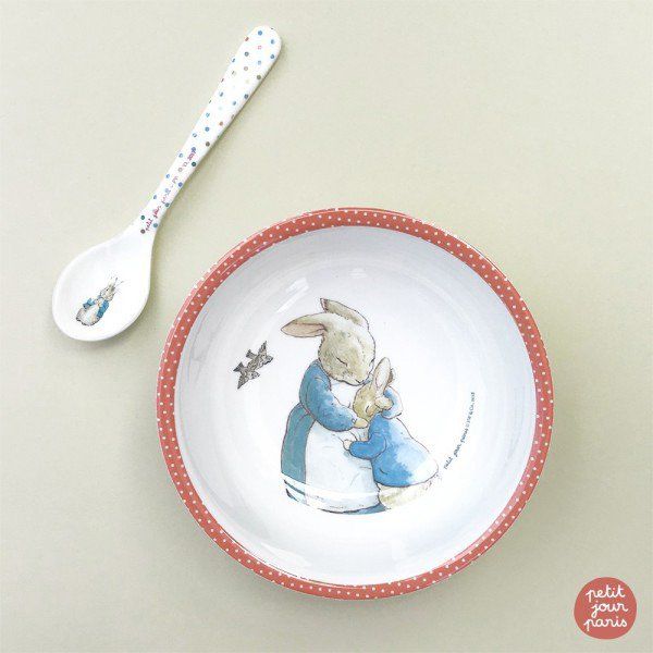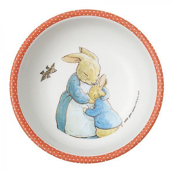 Miseczka dla dzieci z melaminy koralowa Królik Piotruś Petit Jour Paris