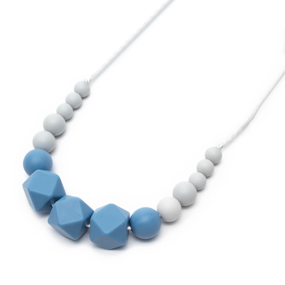 Naszyjnik silikonowy Wendy to produkt, który został stworzony z myślą o wszystkich mamach, które zrezygnowały z noszenia biżuterii w obawie o jej uszkodzenie oraz o bezpieczeństwo ciekawskiego maluszka. Naszyjnik można nosić w towarzystwie niemowlaka bez obaw; wykonano go z silikonowych koralików w ciekawych kształtach. Maluch może je badać ciekawskimi rączkami, a nawet gryźć, żuć itp. – zostały one wykonane z atestowanego silikonu, który jest używany do kontaktów z żywnością. Kanciaste kształty koralików sprawiają, że świetnie się one nadają do masażu dziąseł, z których wyrastają ząbki. Taki masaż przyniesie ukojenie maluszkowi.
