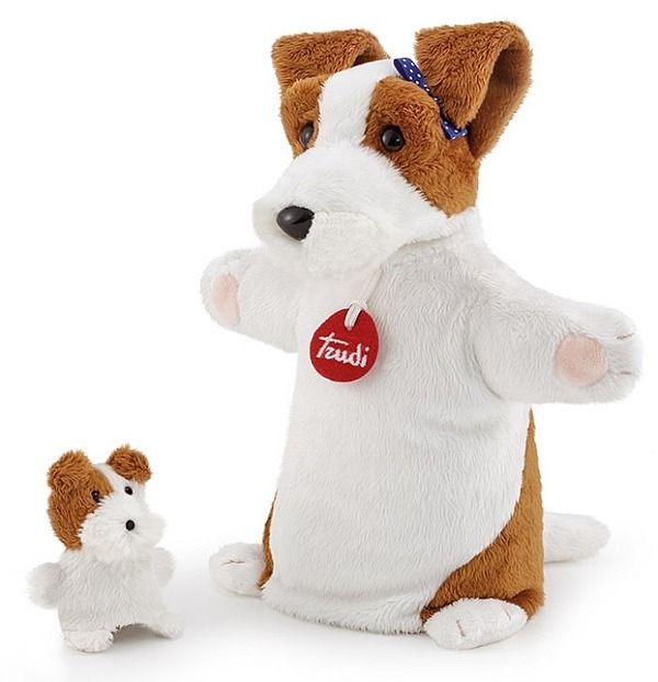 Pacynki na rękę – mama i synek pieski to doskonała okazja, żeby pobawić się w teatrzyk z psią rodzinką w roli głównej. Milutkie pacynki są bardzo realistyczne. Większą można założyć na rękę, mniejsza to marionetka na palec. Większą można swobodnie manewrować, poruszać łapkami i głową.