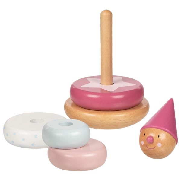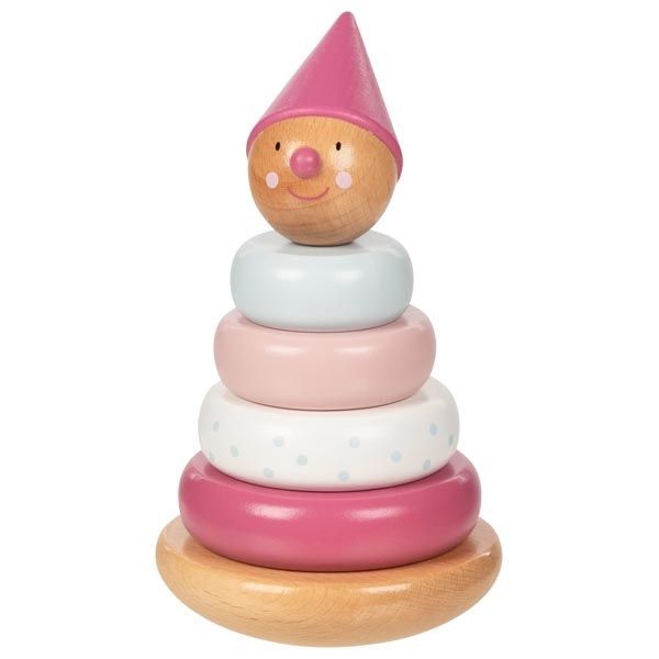 Pajacyk na paliku różowy Goki to produkt przeznaczony dla najmłodszych. Doskonale sprawdzi się on w roli pierwszej układanki! Produkt składa się z 4 krążków, głowy pajacyka oraz podstawy z palikiem. Na początku wyzwaniem dla dziecka będzie nałożenia krążka na palik, a kiedy maluch już opanuje tę czynność, może uczyć się szeregować krążki od najmniejszego do największego i układać piramidkę. Podstawa nie jest całkowicie płaska, delikatnie balansuje, co będzie dodatkowym uatrakcyjnieniem zabawy. Ułożenie pajacyka, który może się wesoło bujać będzie dla malucha świetną zabawą, a także świetnym ćwiczeniem dla małych rączek.