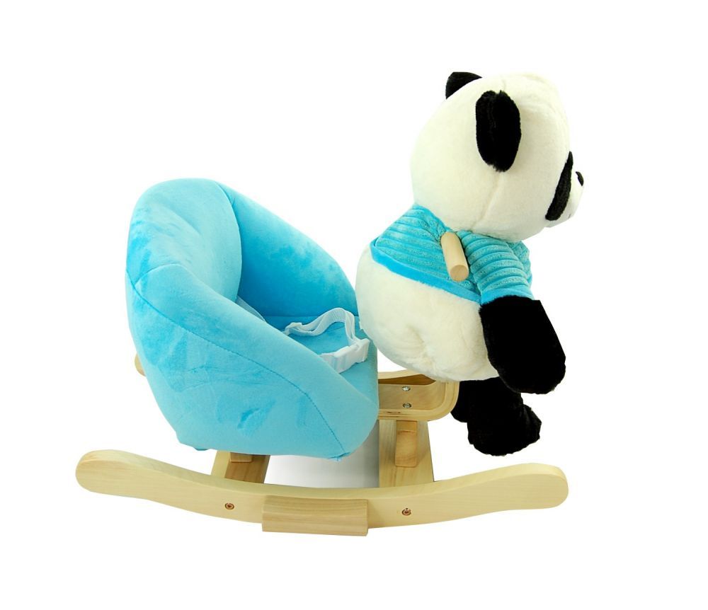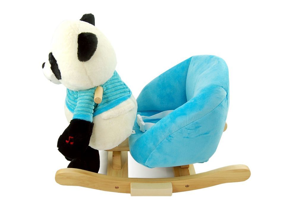 Gdy dziecko naciśnie łapkę pandy, usłyszy kołysankę, co stanowi dodatkową atrakcję. Zabawka wymaga dwóch baterii AA. Płozy oraz uchwyty na rączki wykonano z drewna. Do płóz przymocowano dodatkowy element, aby dziecko mogło wygodnie postawić na nich stopy. Bujak cechuje doskonała jakość wykonania oraz piękne wykończenie, które będzie cieszyło oczy dzieci i rodziców. Produkt ten doskonale sprawdzi się jako prezent dla malucha! Materiał z siedziska jest zdejmowany – można go łatwo wyprać.