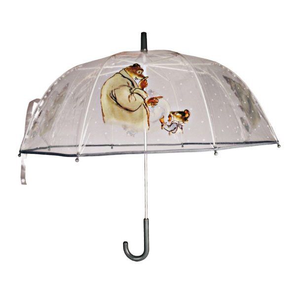Parasolka dla dzieci z Ernestem i Celestyną sprawi, że spacery w deszczu staną się miłe. To doskonała ochrona dla malucha, która z pewnością ucieszy także jego oczy. Na modelu tym umieszczono grafikę z lubianej bajki „Ernest i Celestyna”. Parasolka ta została skonstruowana z myślą o bezpieczeństwie – końcówki drucików zabezpieczone są kuleczkami, a mechanizm otwierania jest łatwy w użyciu. Przezroczysty kolor sprawi, że dziecko będzie mogło widzieć wszystko dookoła i bezpiecznie się poruszać podczas korzystania z parasolki.