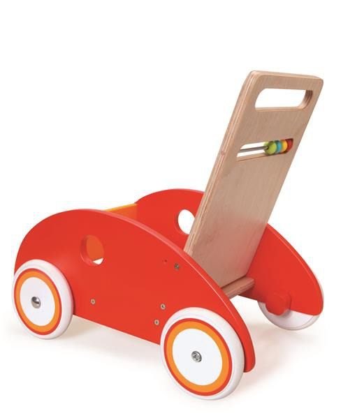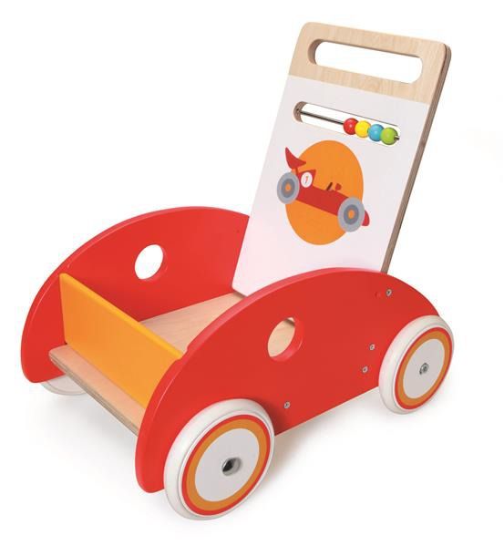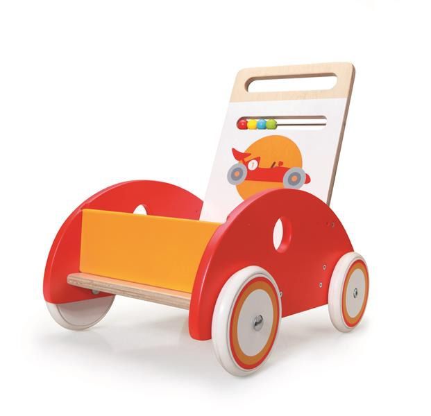 Pchacz Wyścigówka to wspaniały prezent dla dziecka rozpoczynającego naukę chodzenia. Dzięki gumowym oponom nie trzeba obawiać się, że koła zabawki pozostawią ślady na podłodze, więc maluch może bawić się zarówno na zewnątrz, jak i w domu. Oparcie pchacza wyposażono w kolorowe kulki, które na pewno wzbudzą zainteresowanie smyka.