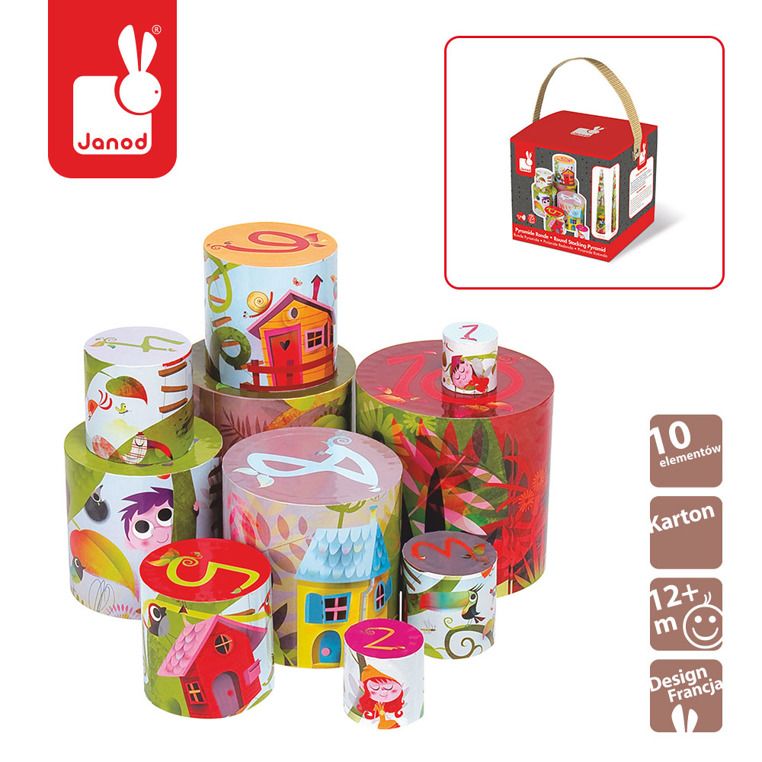 Zabawkę wyprodukowała francuska marka Janod, która znana jest z innowacyjnych projektów oraz oryginalnego designu. Ich produkty cechują się wysoką jakością wykonania, co przekłada się na radość dzieci na całym świecie! Firma słynie również z estetycznych opakowań, więc Piramida wieża Magiczne drzewo to świetny pomysł na prezent!