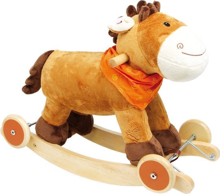 Pluszowy konik na biegunach to gwarancja doskonałej zabawy! Produkt sprawdzi się zarówno jako bujaczek, jak i jako jeździk, dzięki czemu maluch sam będzie mógł wybrać formę rozrywki. Całość zrobiono z naturalnego lakierowanego drewna i pluszu, co sprawia, że konik jest wytrzymały i komfortowy w użytkowaniu.