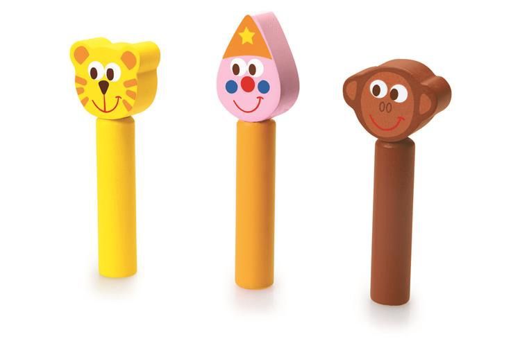 Pop-up Cyrk wywoła uśmiech na twarzy Twojego dziecka! W skład zestawu wchodzą figurki klauna, małpki i tygrysa oraz czerwono-niebieski wóz cyrkowy wyposażony w sznurek do ciągnięcia. Kiedy szkrab naciśnie palcem główki figurek, wyskoczą one z wozu jak najprawdziwsi akrobaci! Brzdąc z pewnością będzie świetnie się bawił, próbując chwycić je powietrzu. Zabawkę wykonano z wysokiej jakości drewna.