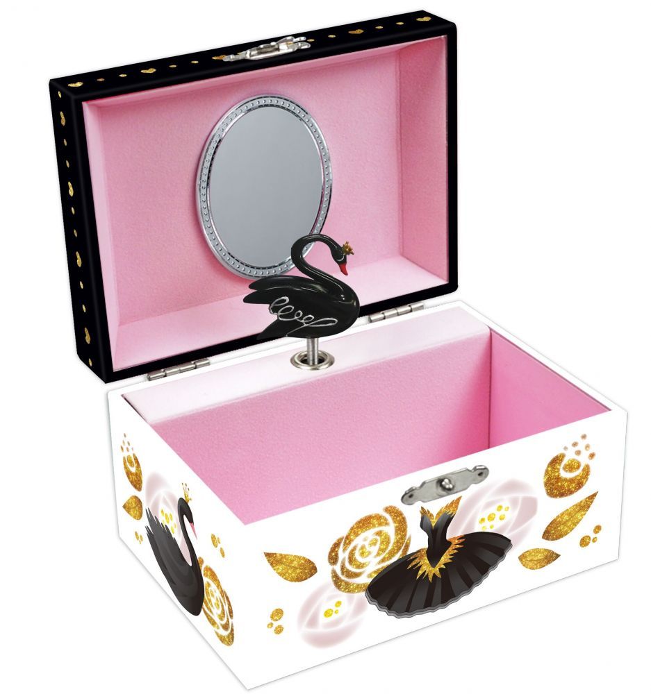 Pozytywka „Czarny łabędź” Magni to doskonały prezent dla każdej małej księżniczki! Produkt pełni 3 funkcję – po pierwsze stanowi pudełeczko na drobiazgi, po drugie będzie on śliczną dekoracją pokoju, a po trzecie zabawi każde dziecko – po nakręceniu mechanizmu, czarny łabędź, która jest w środku obraca się dookoła, a do uszu dziecka dobiega melodia „Jezioro Łabędzie” Piotra Czajkowskiego.