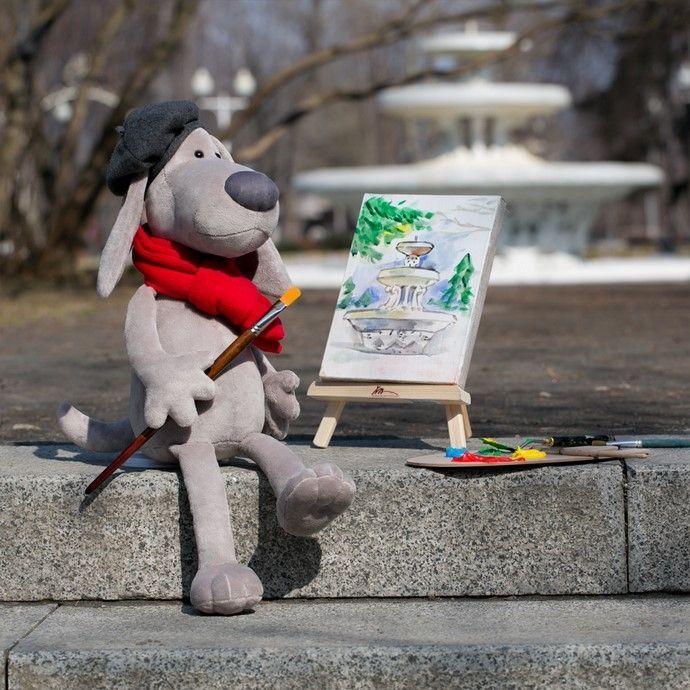 Przytulanka Piotr Artysta Orange Toys to wyjątkowa maskotka, która z pewnością przypadnie do gustu każdemu maluszkowi – zwłaszcza miłośnikowi psów. Piotr ubrany jest jak typowy artysta: ma na sobie zawadiacki beret oraz gustowny, czerwony szal. Piesek jest miły w dotyku, z tyłu umieszczono granulki, które sprawiają, że ugniatanie go będzie relaksujące i przyjemne. Maskotkę cechuje wysoka jakość wykonania oraz piękne wykończenie z dbałością o każdy detal.