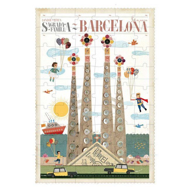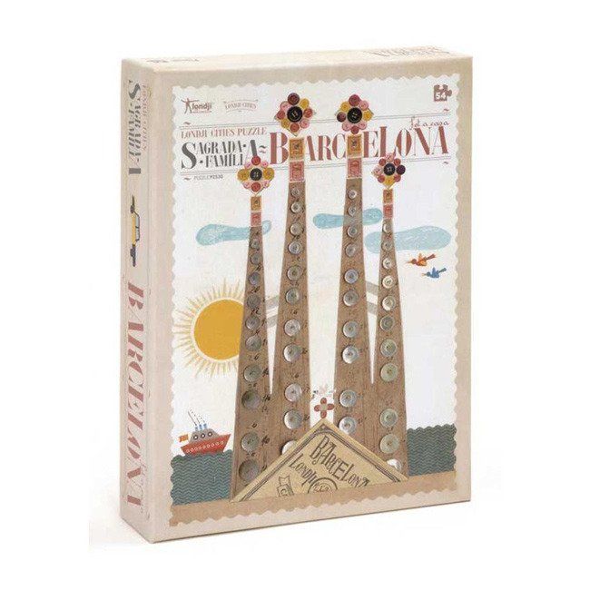 Puzzle dla dzieci z serii Miasta Świata zapraszają wszystkie maluchy w niezapomnianą podróż! Składają się z 54 elementów. Ich układanie będzie jednocześnie świetną zabawą oraz ćwiczeniem spostrzegawczości, cierpliwości i koordynacji ręka-oko. Ułożony obrazek prezentuje Barcelonę – grafika jest intrygująca i oryginalna. Została zaprojektowana przez znanego ilustratora, jest utrzymana w stylu vintage.