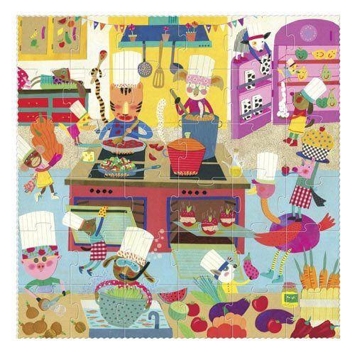Puzzle dla dzieci Chcę być szefem kuchni! to bardzo pomysłowa układanka, która przyniesie wiele radości każdemu maluchowi! Do ułożenia jest obrazek przedstawiający pracowitych kucharzy, zawiera on mnóstwo kolorowych detali, które z pewnością zaciekawią dziecko. Układanie puzzli stanowi świetną formę treningu – doskonali umiejętność koncentracji, spostrzegawczości oraz rozwija koordynację oko-ręka. Układanka składa się z 36 puzzli.