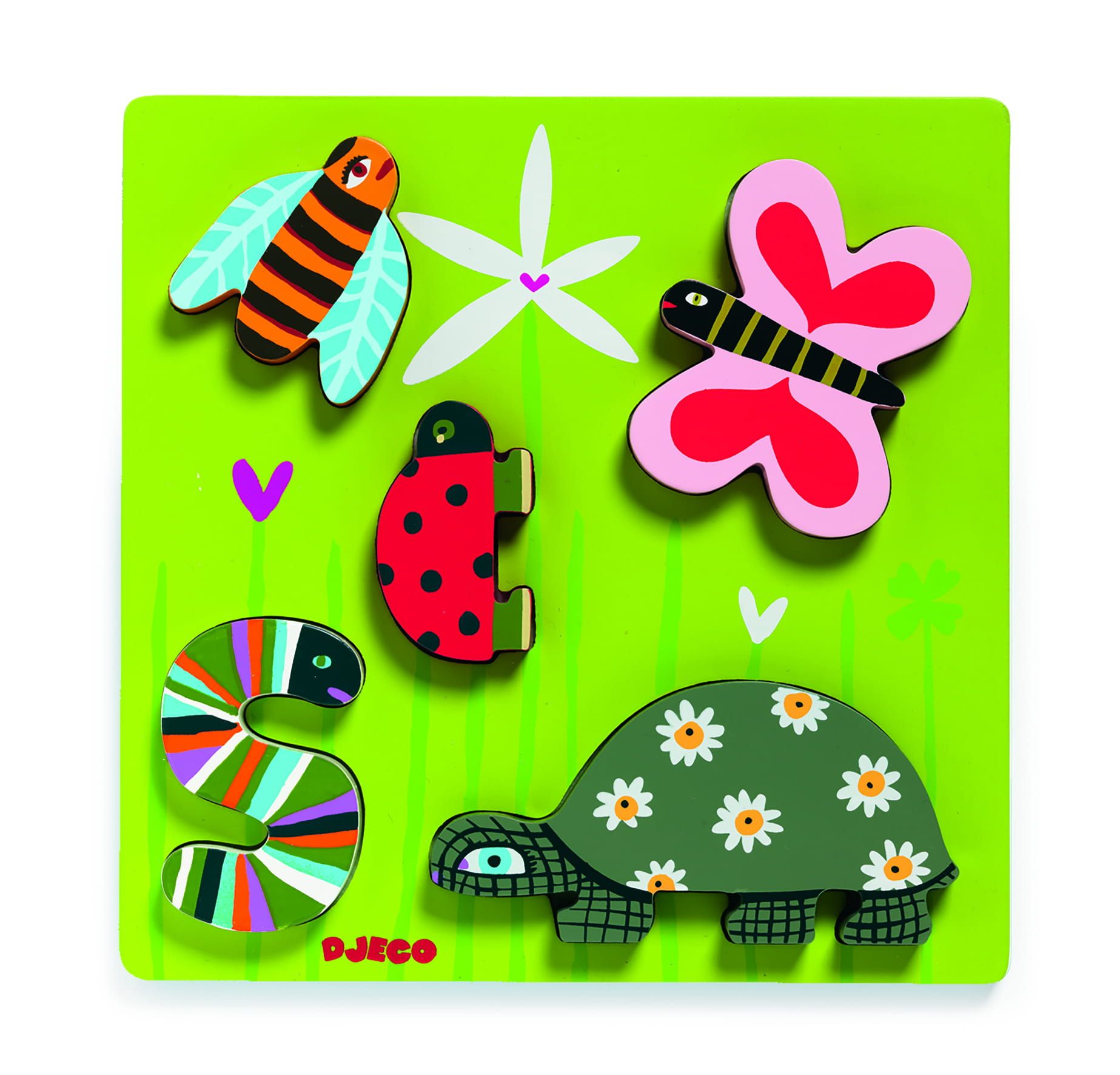Wykonane z dużą starannością puzzle Kimi wywołają uśmiech na twarzy Twojego malca i pozwolą mu popracować nad ważnymi umiejętnościami. Zestaw zawiera drewnianą podstawkę z wgłębieniami oraz pięć puzzli przedstawiających mieszkańców ogrodu. Zadaniem szkraba jest dopasowanie puzzli-zwierzątek do wyznaczonych miejsc na planszy. Żywe kolory i miły dla oka design zabawki z pewnością trafią w gust smyka.