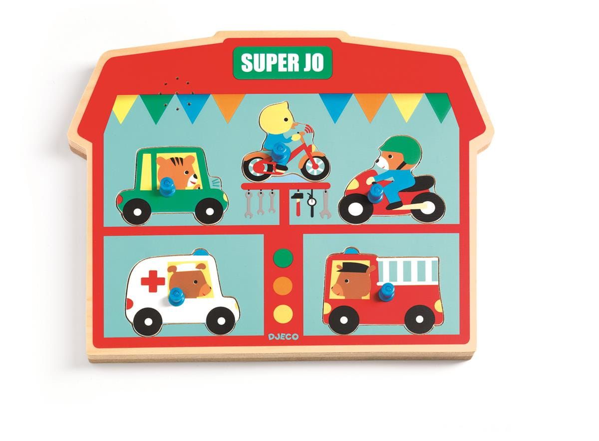 Gry i układanki Puzzle drewniane z dźwiękiem Super Jo Djeco dla dzieci od 1,5 r.ż.