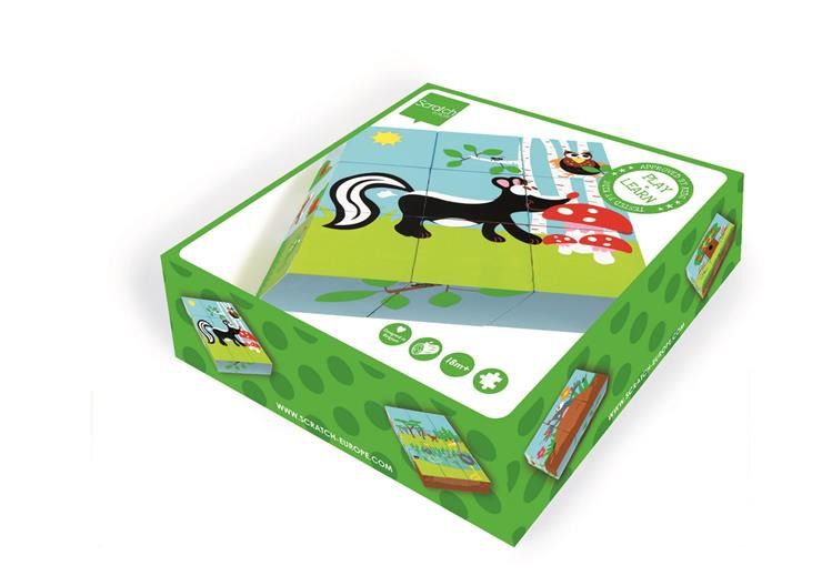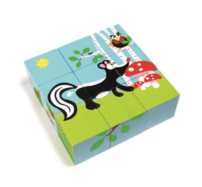 Puzzle klockowe Las spodobają się każdemu miłośnikowi układanek! Zestaw składa się z dziewięciu sześciennych klocków wykonanych z drewna. Na każdym boku klocka znajduje się część ilustracji przedstawiającej kreta, ptaszka, żółwia, skunksa lub zajączki. Aby ujrzeć obrazek wybranego zwierzęcia, szkrab musi znaleźć odpowiednie fragmenty i ułożyć je w określony sposób, co będzie dla niego nie lada wyzwaniem!