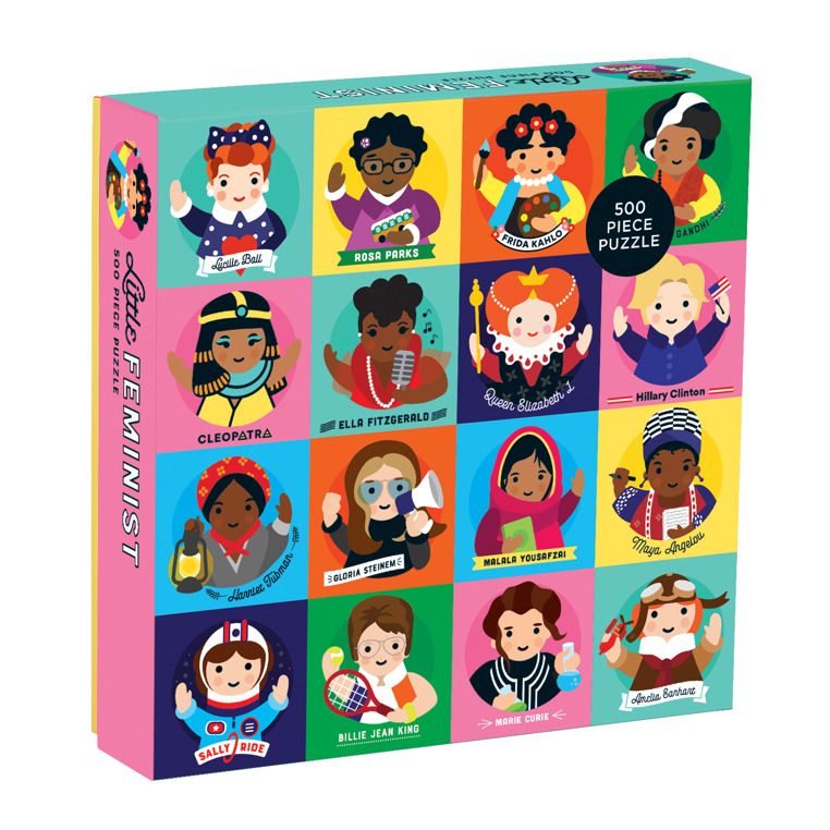 Układanka Niezwykłe kobiety zapewnia godziny świetnej zabawy, podczas której dziecko dowie się czegoś nowego o ważnych postaciach historycznych. Puzzle składają się z 500 elementów tworzących efektowny obrazek o wymiarach 51 x 51 cm z zabawnymi portretami wielkich kobiet, m.in. Indiry Gandhi, Fridy Kahlo, Hilary Clinton, Kleopatry czy Marii Skłodowskiej-Curie.