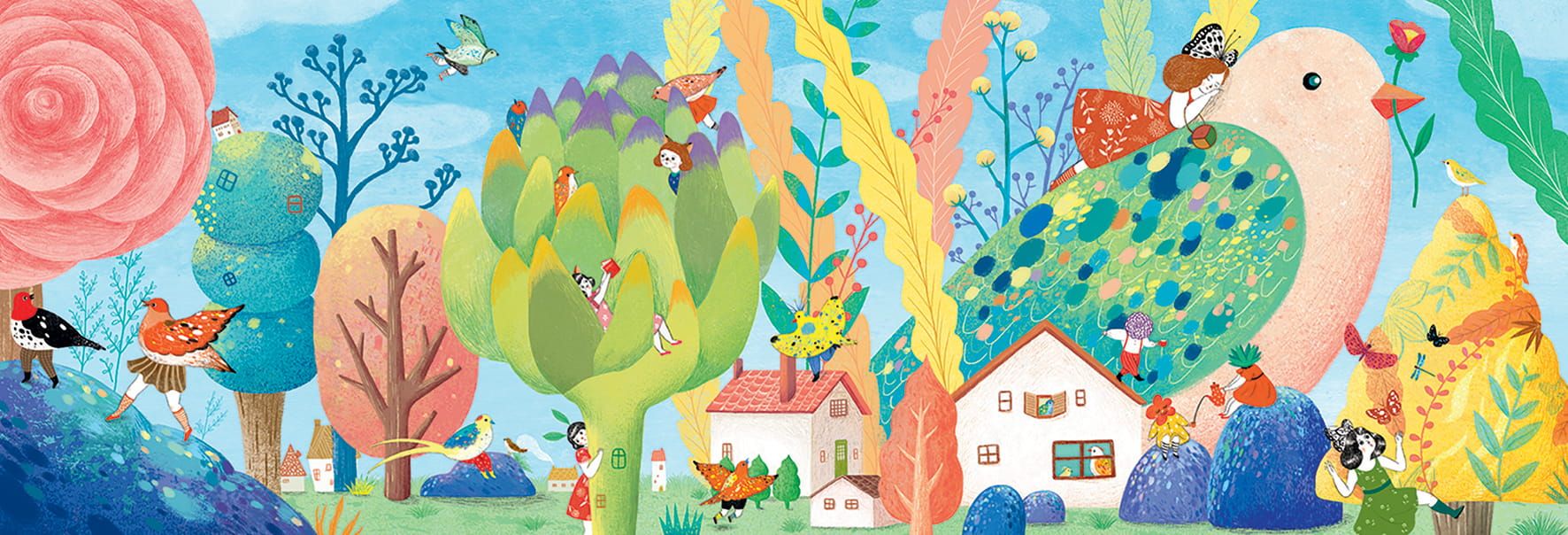Miss Birdy to unikalny zestaw puzzli, który doskonale sprawdzi się jako upominek. W opakowaniu dziecko znajdzie 350 elementów tworzących bajecznie kolorowy, rozbudzający wyobraźnię obrazek w formie panoramy. Smyk nie będzie mógł oderwać od niego wzroku!
