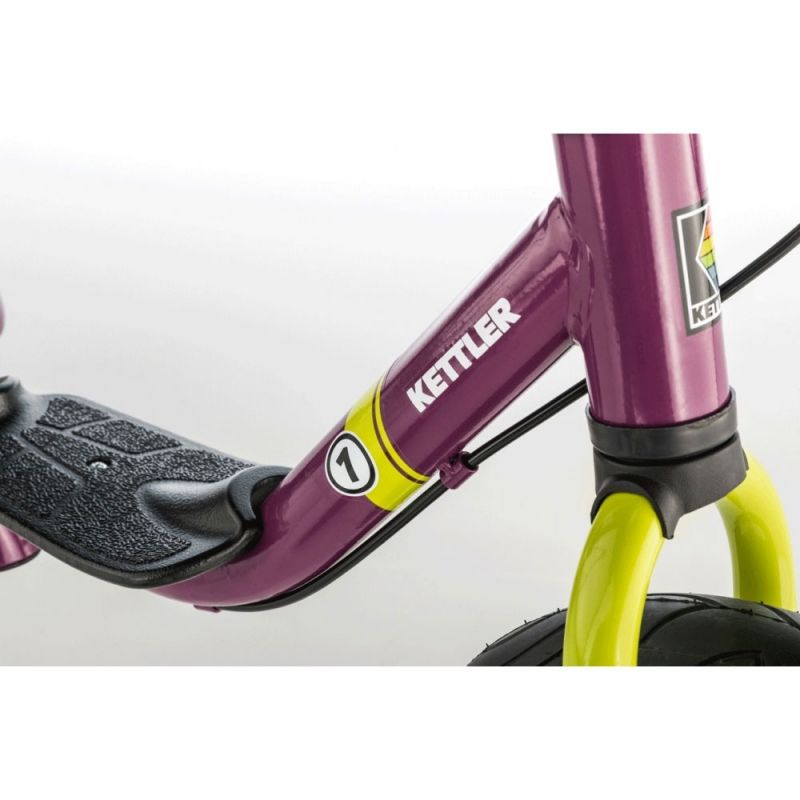 Rowerki biegowe firmy Kettler cieszą się dużą popularnością na całym świecie. Model Run Air Girl składa się ze stalowej ramy pokrytej odporną na zadrapania powłoką poliestrową, wygodnego siodełka z regulacją wysokości (37–46 cm) zaprojektowanego przez fizjoterapeutów dziecięcych, podnóżka ułatwiającego wsiadanie i zsiadanie, dwóch kół 12,5″ z łożyskami kulkowymi i pompowanymi oponami, bezpiecznych rączek oraz kierownicy bez ograniczenia skrętu. Pojazd wyposażono w hamulec ręczny, stabilną nóżkę boczną i ochraniacz na kierownicę.