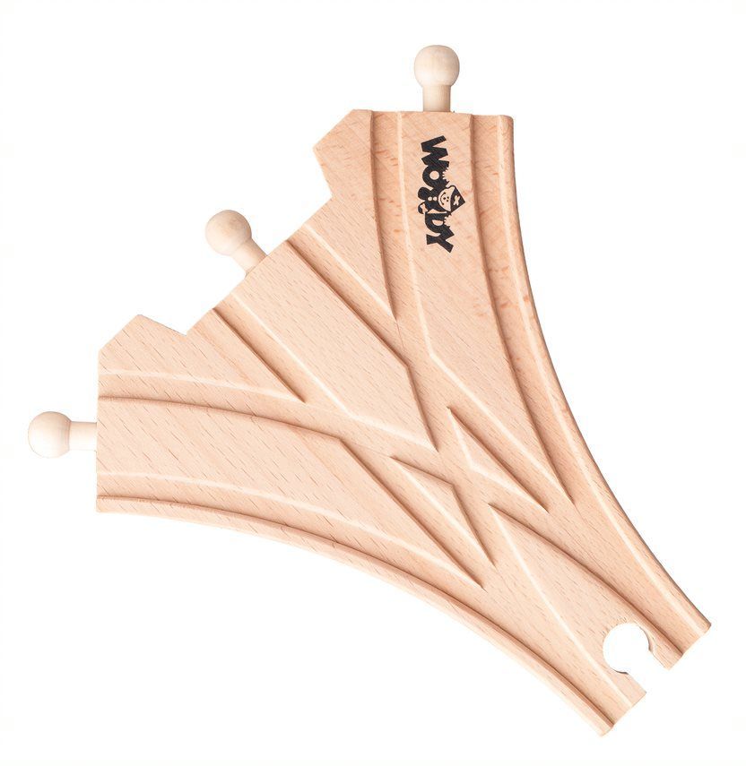 Rozjazd Woody jest kompatybilny z elementami kolejek takich firm jak: Brio, IKEA, ELC, Little Steps, Eichhorn, Woodyland i innych, dzięki czemu trasę będzie można rozbudowywać bez końca!