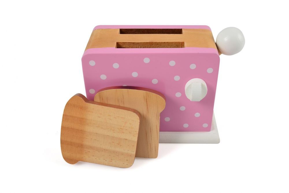 Różowy tester drewniany Magni to wszystko, co potrzebne do zabawy w przygotowanie pysznych, śniadaniowych tostów. W zestawie znajdują się drewniane kanapeczki, które po naciśnięciu dźwigni wyskakują z opiekacza.