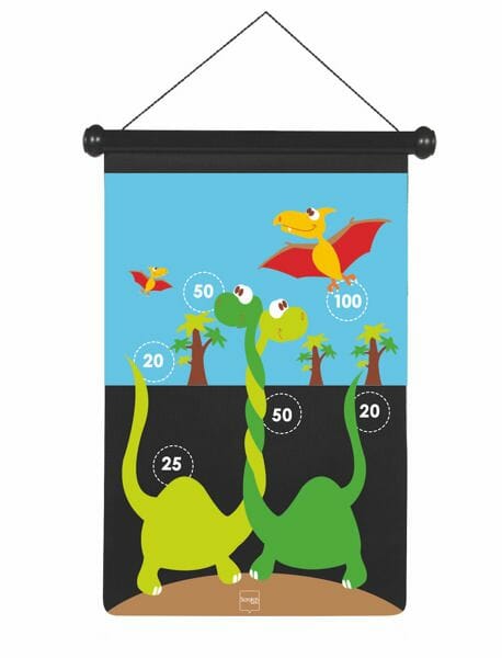 Rzutki magnetyczne Dinozaury ucieszą każde dziecko zafascynowane światem prehistorycznych gadów! Zestaw składa się z tarczy oraz sześciu lotek w kolorach zielonym i czerwonym. Obie strony tarczy zostały ozdobione kolorowymi ilustracjami przedstawiającymi różne gatunki dinozaurów. Lotki są wykonane z tworzywa sztucznego i mają metalowe, zaokrąglone końcówki, które zapewniają bezpieczną zabawę.