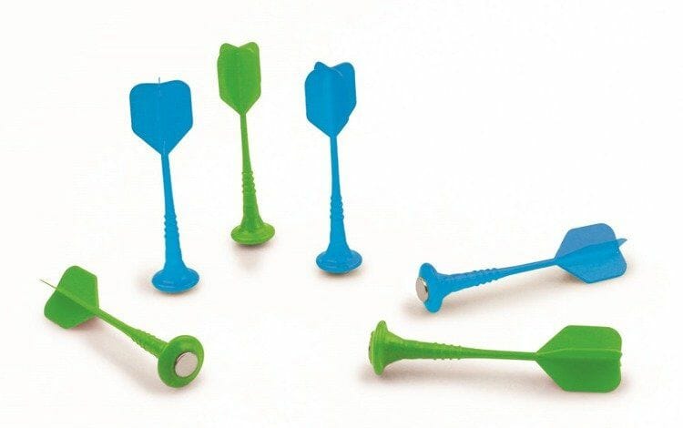 Rzutki magnetyczne Potwory dostarczą dziecku mnóstwa frajdy i pomogą mu rozwinąć ważne umiejętności. Zestaw składa się z dwustronnej tarczy magnetycznej ozdobionej ilustracjami przedstawiającymi groźne potwory, a także sześciu lotek w kolorach zielonym i niebieskim, które mają zaokrąglone końcówki zaprojektowane z myślą o najmłodszych uczestnikach zabawy. Po zakończeniu gry tarczę można schować do przeznaczonej dla niej tuby.